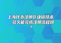 上海代办注册区块链技术,多久能完成注册流程呀?直接回答核心问题:通过专业代办机构办理,上海区块链技术公司注册全流程通常需20-35个工作日。其中普通公司注册环节约7-15个工作日,区块链专项备案需额外10-20个工作日,具体时长取决于材...