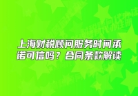 上海财税顾问服务时间承诺可信吗?合同条款解读在选择财税顾问服务时,企业常面临两大疑虑:服务时间承诺是否可靠?合同条款如何保障权益?本文通过拆解核心问题与合同关键点,为上海企业提供实用指南。时间承...