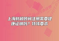 财税行业作为专业服务领域,其注册要求常引发从业者的疑问:上海财税顾问注册是否需要健康证明? 结合政策规定和行业实践,我们从基本条件、健康证明必要性、特殊要求三个层面展开分析。财税顾问注册的基本门槛根据上海市场监管...