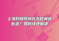 为什么财税顾问代办时间会被拖延?许多初次委托财税顾问的企业会发现,原本预期高效的服务流程却因各种原因被“卡壳”。例如,某公司因材料反复补充耽误了两周,另一家因顾问团队内部流程混乱导致申报逾期。这些拖延的...