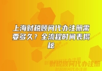 上海财税顾问代办注册需要多久?全流程时间表揭秘对于初次创业的企业主而言,最关心的问题莫过于“财税顾问代办公司注册到底需要多久?”结合上海2025年最新政策及实操经验,本文将拆解全流程时间节点,并揭秘影响效率的关键因素。一、代办注册全流程...