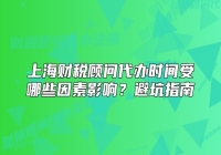 财税顾问代办时间为何相差悬殊?许多初次接触财税服务的企业主都会疑惑:同样的代办事项,为什么有的机构承诺3天完成,有的却需要1个月?答案在于,财税顾问代办时间并非固定值,而是由多重动态因素共同作用的结果。以下从实务角度解析关键影响因素,并提供避坑......