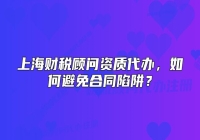 上海财税顾问资质代办,如何避免合同陷阱?在委托财税顾问公司代办资质时,合同是保障双方权益的核心依据。然而,条款模糊、权责不明等陷阱可能导致后续纠纷甚至资质申请失败。如何识别并规避这些风险?以下是关键要点。一、合同陷阱的常见类型及...