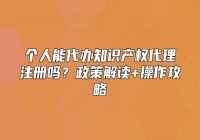 个人能代办知识产权代理注册吗?政策解读+操作攻略个人能否成为知识产权代理机构?根据《商标法实施条例》及《商标代理监督管理规定》,知识产权代理业务必须由专业机构开展。个人无法以自然人身份直接...