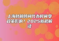 上海财税顾问代办时间受政策影响?2025新规解读2025年财税政策的核心变化2025年,我国财税政策迎来多项调整,直接影响上海企业财税顾问代办的效率与合规性。涉税专业服务新规、增值税改革及企业所得税优惠结构调整是三大核心......