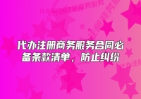 代办注册商务服务合同必备条款清单,防止纠纷委托代办公司注册商务服务时,一份严谨的合同是避免纠纷的核心工具。以下是新手必须关注的关键条款清单,结合法律实践和行业经验梳理而成。一、基础条款:明确核心事项,避免模糊空间委托事项清单必须明确......