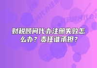 财税顾问代办注册失败怎么办?责任谁承担?——代办注册失败的常见原因材料造假或缺失:部分代办机构为节省时间,可能伪造股东身份证明、验资报告等材料,或未提醒企业补充完整资料,导致审批直接被驳回。资质不符:财税顾问若缺乏《代理记账许可......