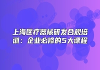 上海医疗器械研发合规培训:企业必修的5大课程医疗器械行业正经历前所未有的监管变革。在上海这个中国医疗创新的桥头堡,合规能力已成为企业存续和发展的生命线。但面对纷繁复杂的法规要求,许多研发团队常陷入“重技术、轻合规”的...