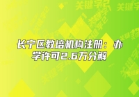 长宁区教培机构注册:办学许可2.6万分解在长宁区开设教培机构,办学许可证是合规运营的核心门槛。许多创业者困惑:2.6万元费用是否合理?包含哪些项目? 本文将深度拆解成本与流程,助您高效规划。2.6万费用合理吗?——办学许可成本拆解2.6万元是长宁区......