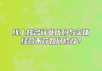 线上核名时发现行业代码与实体经营不符怎么办? 这是许多创业者在注册公司时遇到的典型问题。本文将用最直白的语言,手把手教你如何解决这个难题。第一步:搞清行业代码选错的影响行业代码是工商系统识别企业经营范围的“身份证”...