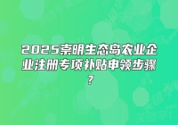 2025年崇明生态岛针对农业企业推出的专项补贴政策,为鼓励绿色农业发展提供了重要支持。本文将详细解析申领步骤,帮助符合条件的农业企业高效完成申请流程。一、哪些企业符合申请资格?核心问题: 什么样的农业企业能享受2025崇明生态岛专项补贴?答......