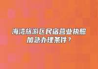 滨海旅游区民宿营业执照能否加急办理?在滨海旅游区开设民宿时,若需快速开业抢占旺季市场,加急办理营业执照成为关键需求。本文围绕滨海旅游区民宿营业执照加急办理条件展开详解,帮助经营者高效完成资质审批。一、加急办理的核心前提条件...