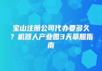 一、为什么机器人产业园能3天拿执照?产业集聚效应让宝山机器人产业园成为注册加速器。这里集聚了200+工业机器人上下游企业,园区与工商部门建立数据直联通道,企业注册享受三重提速buff:材料预审前置:代办机构提前核验公司章程条款(常见驳回......