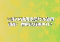 VR企业在上海申请资质为何成为黑中介的“肥肉”?上海VR产业近年爆发式增长,但资质审批专业性强、材料复杂(如网络文化经营许可、软件著作权、安全检测报告等),许多初创企业缺乏办理经验。黑中介利用...
