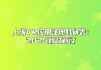 上海VR应用注册核心时间节点2025年上海市元宇宙重大应用场景"揭榜挂帅"申报窗口为2025年6月5日至6月30日。申报主体需通过"上海市元宇宙重大应用场景‘揭榜挂帅’场景申报"平台提交材料,逾期不予受理。联合体......