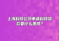 上海科技公司申请科技贷款的核心条件上海科技企业申请贷款需满足资质、经营、财务等多维要求,不同产品条件差异显著。以下是主要科技贷款产品的具体条件:一、三大主流科技信贷产品条件科创助力贷企业资质:注册于上海且成立满1年;通过科技型中小企业评......